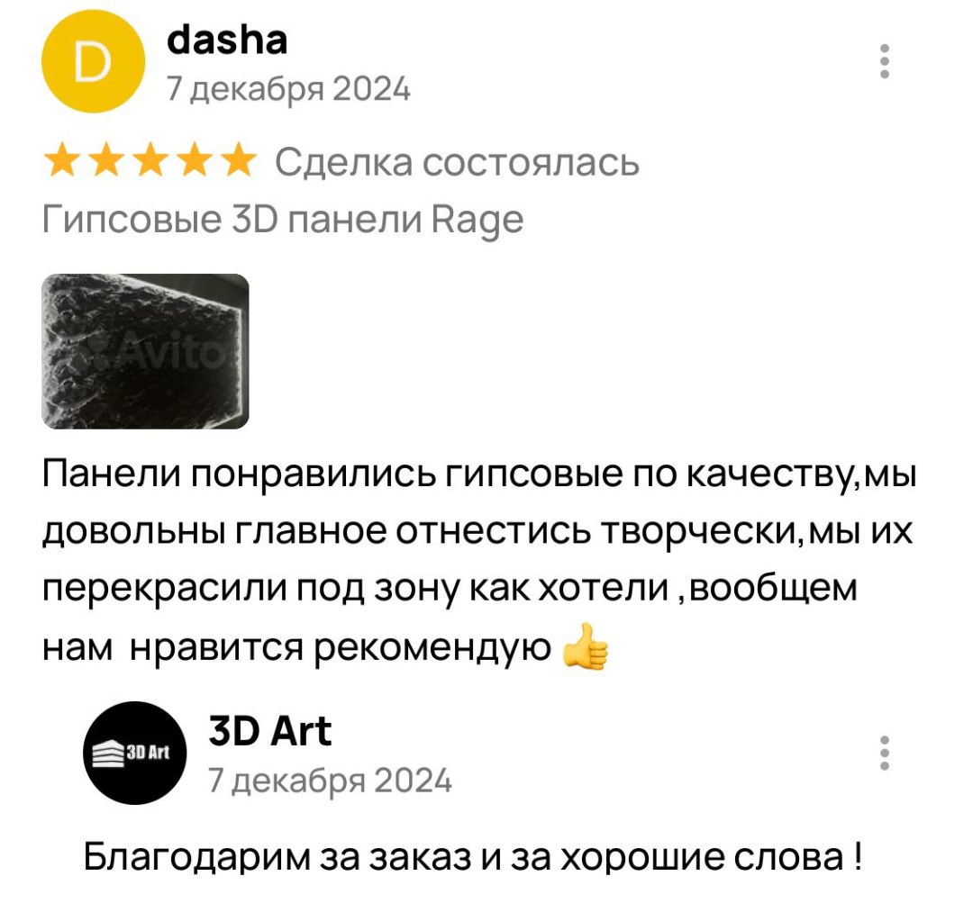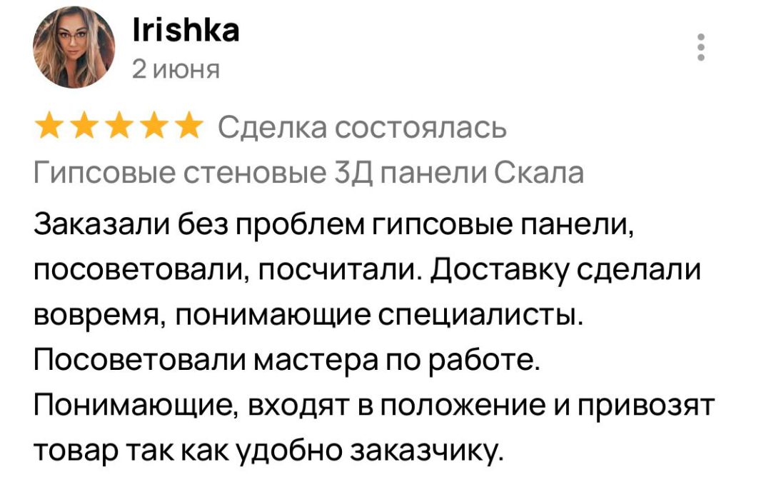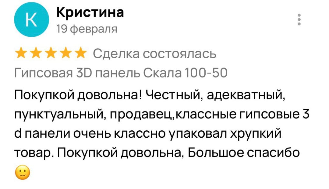 Компания производит гипсовые панели, которые безопасны для здоровья, долговечны и имеют уникальные эстетические решения. Высокое качество работы достигается благодаря современным технологиям, строгому контролю на каждом этапе производства и команде опытных специалистов